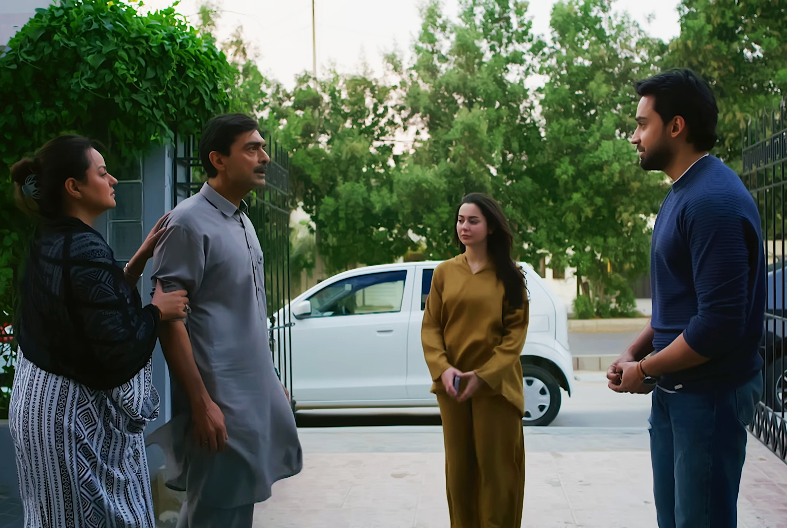 Meri Zindagi Hai Tu opens with a New Year’s Eve, where Kamyar’s (Bilal Abbas Khan) cybertruck nearly misses an accident with Nadir (Atabik Mohsin) and Falak (Mehar Jaffri) ‘s car. After a heated argument, Kamyar slaps Nadir, but Falak steps in, apologizes, and rushes her brother to the hospital. Ayra (Hania Aamir) arrives at the hospital to see his brother Nadir. She’s a well-principled girl and urges him to file a police complaint, but his father, Irfan (Alyy Khan), refuses to do so.