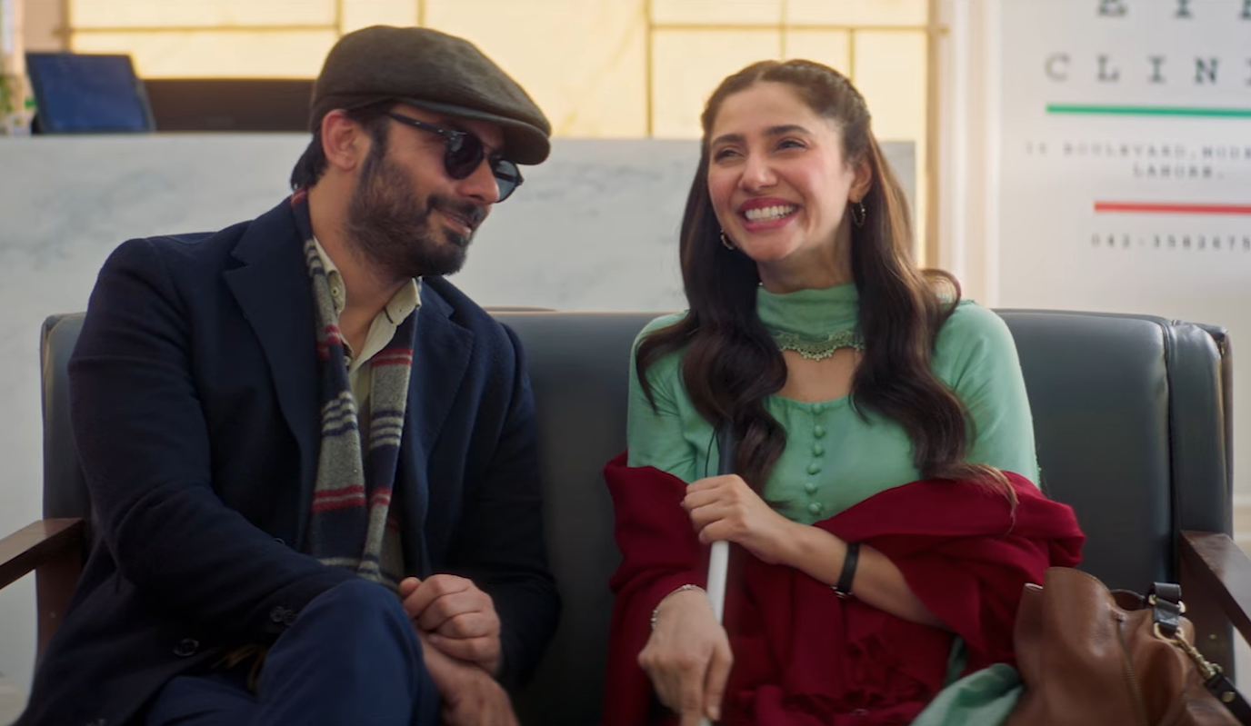 Fawad Khan’s character Mansoor is shown to meet Neelofar at an eye clinic where they literally bump into each other. After discovering that she’s blind he follows her and keeps returning to the eye clinic in the hopes of meeting her. His manager, played by Madiha Imam, cautions him against this as the social media generation that so adores him right now would deem his behaviour as “stalking”. He brushes this off, telling her that this generation knows nothing of love.